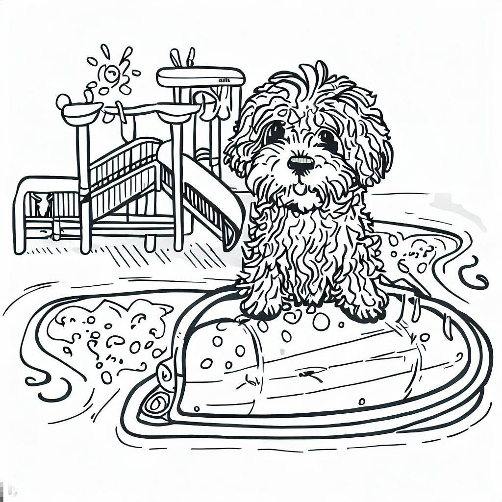 To Kelly's surprise, the yard was like a magical wonderland. It had a magnificent waterpark designed especially for dogs! There were colorful water slides, bubbling fountains, and a sparkling pool. It was every dog's dream come true.