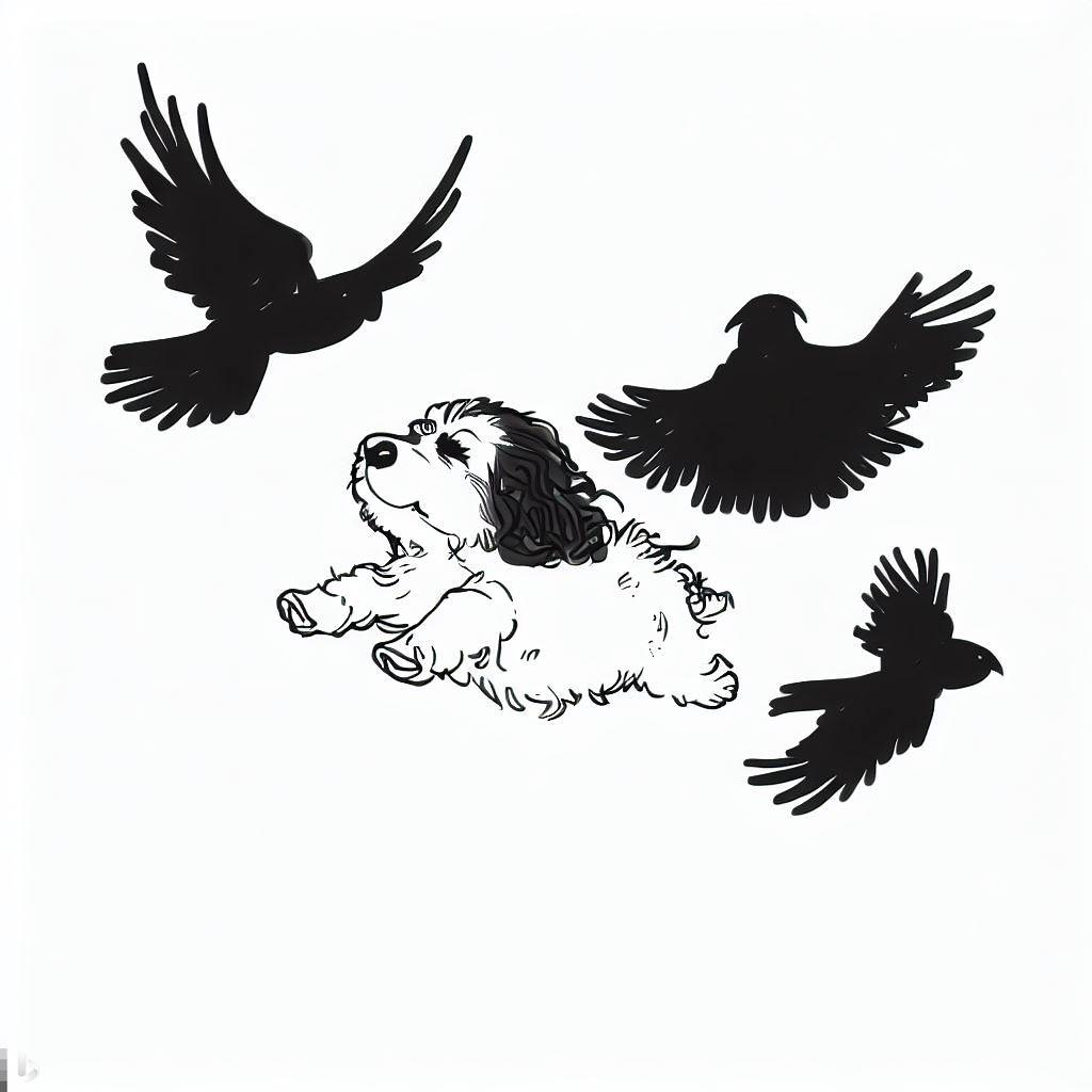 And so, Kelly's unexpected adventure turned into a beautiful blessing. She found a special place to play and a loving family who cherished him dearly. As for the crows, they became his loyal sky companions, always keeping an eye on their mischievous friend who had found her slice of doggy paradise.