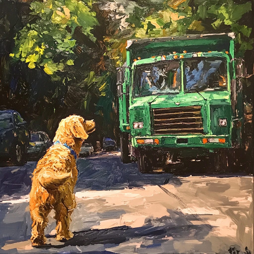 Every morning, Oscar would greet the day with a joyful bark, ready for new adventures. But there were two things that Oscar loved more than anything else: fire trucks and garbage trucks.