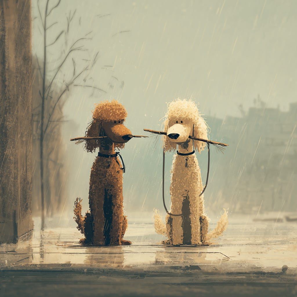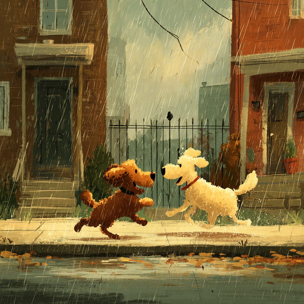 With their hearts full of joy, the poodle sisters trotted back to their cozy home, dreaming of more rainy-day races and the endless possibilities of their next adventure.