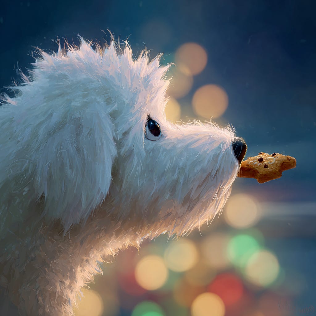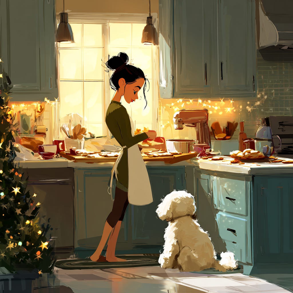 From that day on, Hillary got a special dog-friendly Christmas treat every year. Emma would always bake Hillary a special batch of fancy, dog-friendly treats. And each holiday season, as the cookies baked and the snow fell outside, Hillary knew that Christmas was truly the sweetest time of all