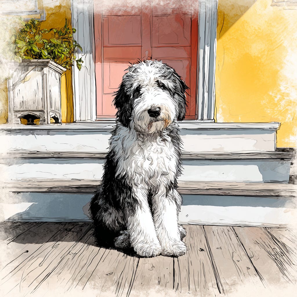 Huffy was a big, fluffy Bernedoodle with the grumpiest face in the neighborhood. No matter what happened, he always found something to complain about.