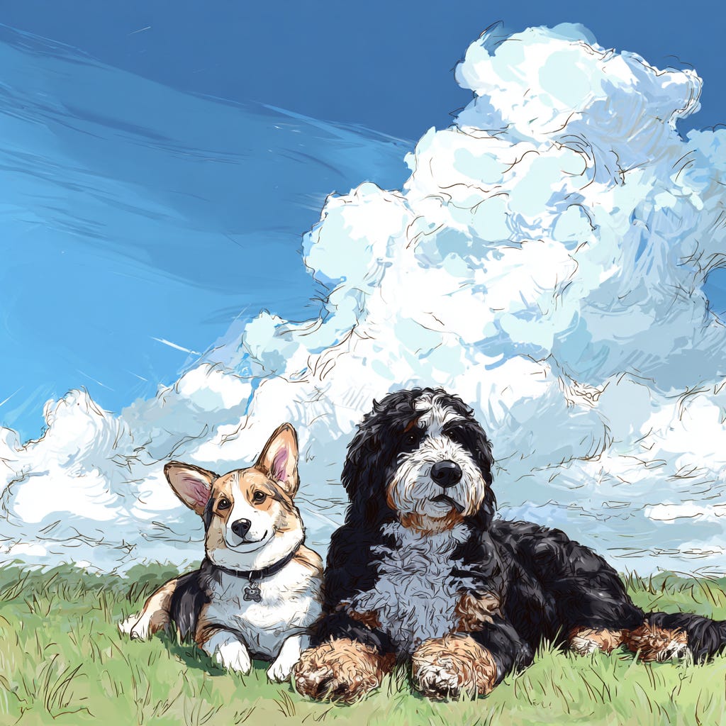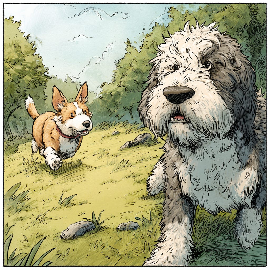 One day, his neighbor, a cheerful Corgi named Poppy, invited him to the park. “Come on, Huffy! We’re playing tag!”