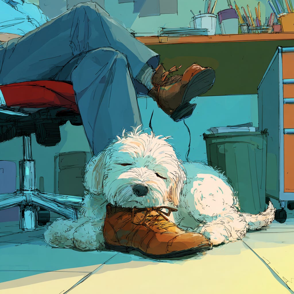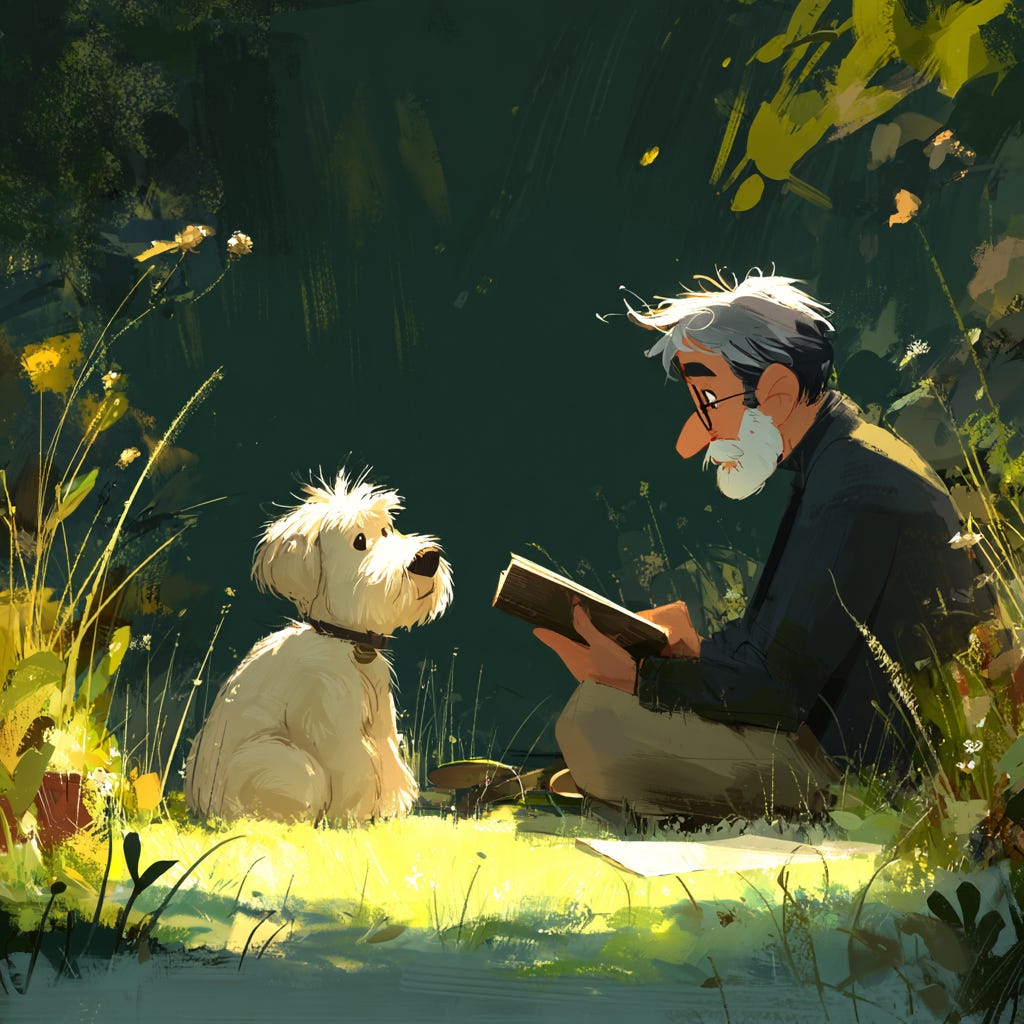 Pemberley, a curly-haired schnoodle with bright, curious eyes, had just had the best summer ever. Every day, she and her owner, Mr. Darcy, explored the park, played fetch, and shared cozy afternoons reading in the garden.